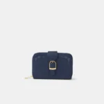 Navy Buckle Embroidery Purse